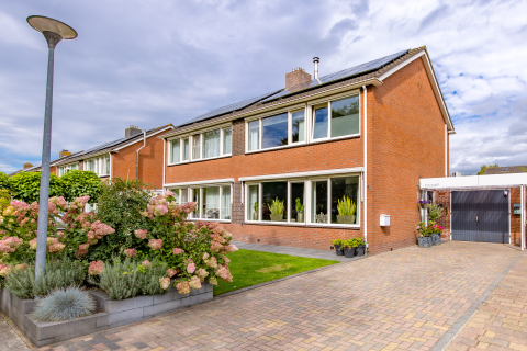 Indeling: Hal/entree, meterkast, royale woonkamer met laminaatvloer, grote slaapkamer met schuifwandkast en laminaatvloer, ruime woonkeuken met schuifpui, grote kelder, toilet, wasruimte, bijkeuken met vaste kast en laminaatvloer, werkkamer, achterhal. De begane grond grotendeels voorzien van plavuizenvloer.